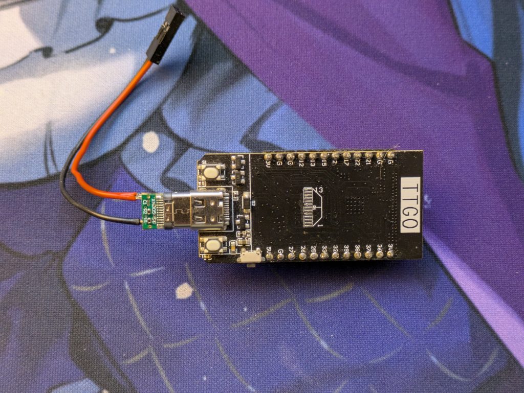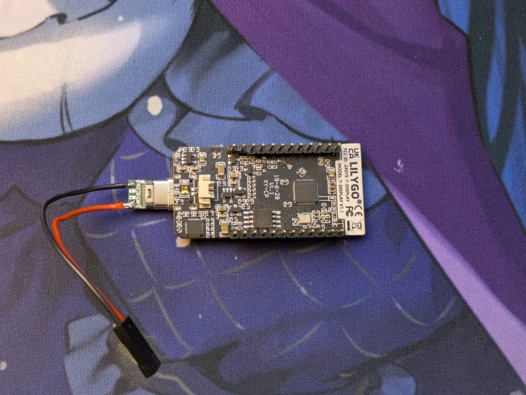 a LILYGO T-Display with a power cable