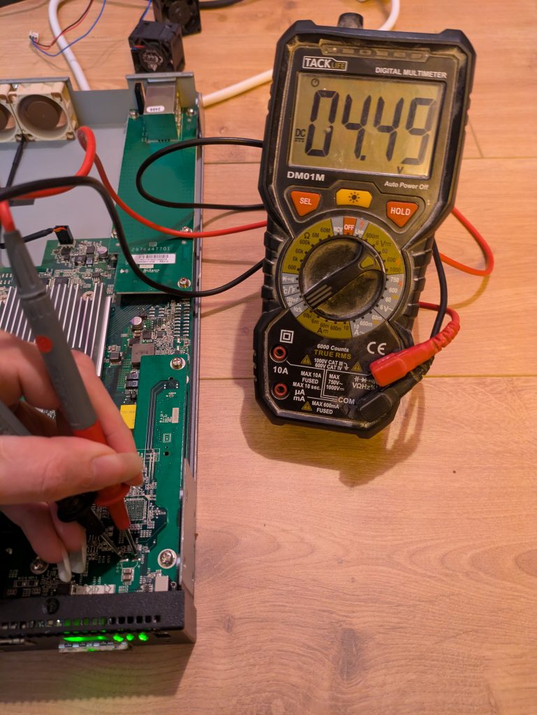 • Turn off switch, plug in old fans: It starts up, and is happy again. Good, I didn’t brick it